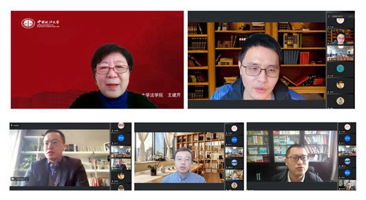 教職工自由發言階段,教師代表王建芹結合自身工作實際,分享在學院工作的心得,表達了對學院的感謝。苑甯甯結合所在學科建設情況,介紹了自身學術研究進展,對學院的支持表示感謝。随後,兄弟單位特邀嘉賓法治政府研究院院長趙鵬、法律史學研究院副院長王銀宏、法與經濟研究院副院長徐文鳴回顧與學院在研究項目、學科建設中的合作,對學院搭建的合作平台表示感謝,為學院發展送上了真摯祝福。