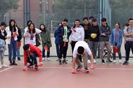 1604班參賽同學則進行得較為艱難,進行了後半賽程時伴随着一陣陣的“慘叫”,最後在一片歡笑聲中順利完成任務。最快的是1602班的參賽同學,盡管體型并不占優勢,但是靈活而有力量,不疾不徐,排除“幹擾”穩穩地移動每一步,最終最先到達終點。19級小組速度雖快但是不夠平穩,不慎一隻腳觸地,隻能重頭再來;但是他證明了一句話:“年輕就是力量”,盡管是從頭再來,但是速度反而更快,有了第一次的經驗,前進得也更為平穩,短時間内就到達終點,奪得第二!