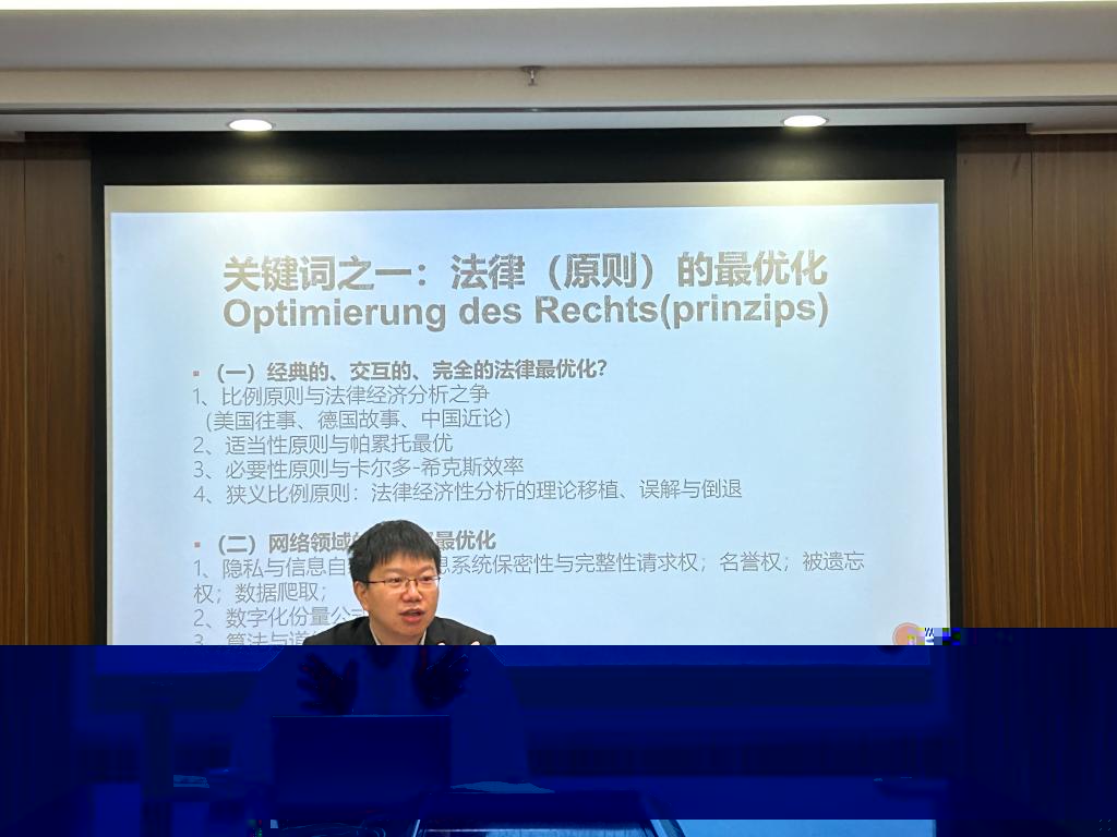 在研讨環節,雷磊老師就德國海外交流經曆對于法學理論專業研究生的意義與德國法哲學的體系化構造能力與馮威老師展開了探讨。李倩老師就阿列克西憲法權利适用的比例原則進行了提問。張力老師、袁鋼老師就德國博士生培養的具體要求、學術訪問的可能性和對于我院法學人才培養的啟示進行了交流。